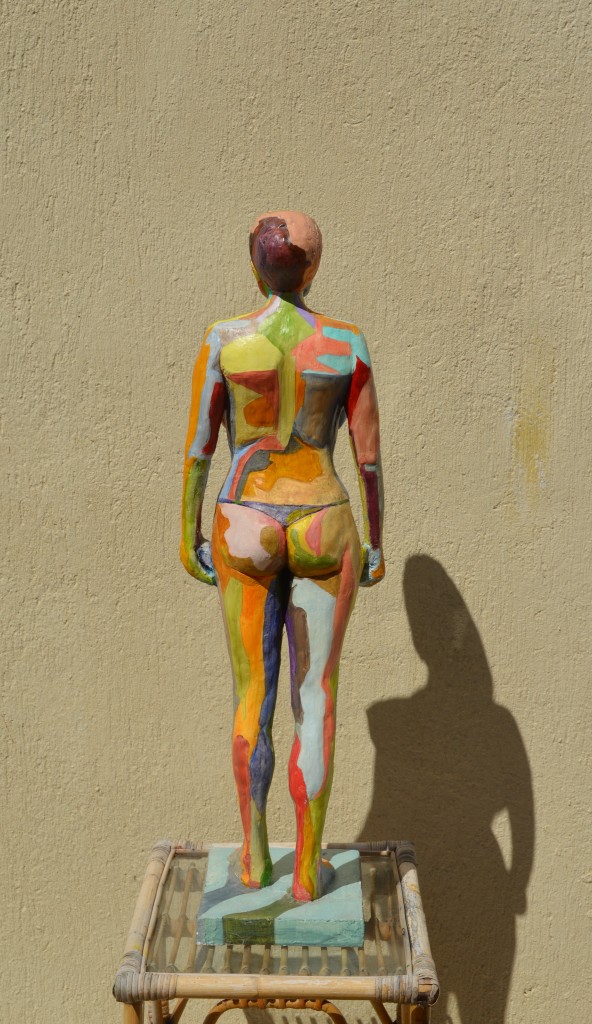 Γλυπτό από γύψο ζωγραφισμένο με λάδια ύψος 78εκ βάση 25εκ.