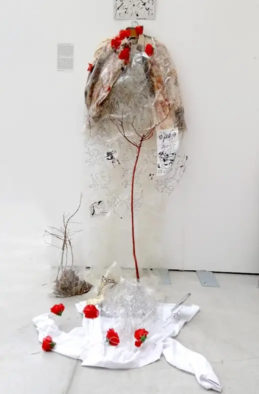 Το ένδυμα κενό και άδειο, σαν ανάμνηση κάποιου σώματος — κάποιο σχήμα-χώρος που δεν περιέχει πραγματικά σωματίδια, αλλά εικονικά, πλασματικά — το κενό που κρύβει ουσία, είναι αυτό που “γεννάει” την ιδέα της ανθρώπινης ύπαρξης. Το κενό περιέχει δυνητικά τα πάντα.